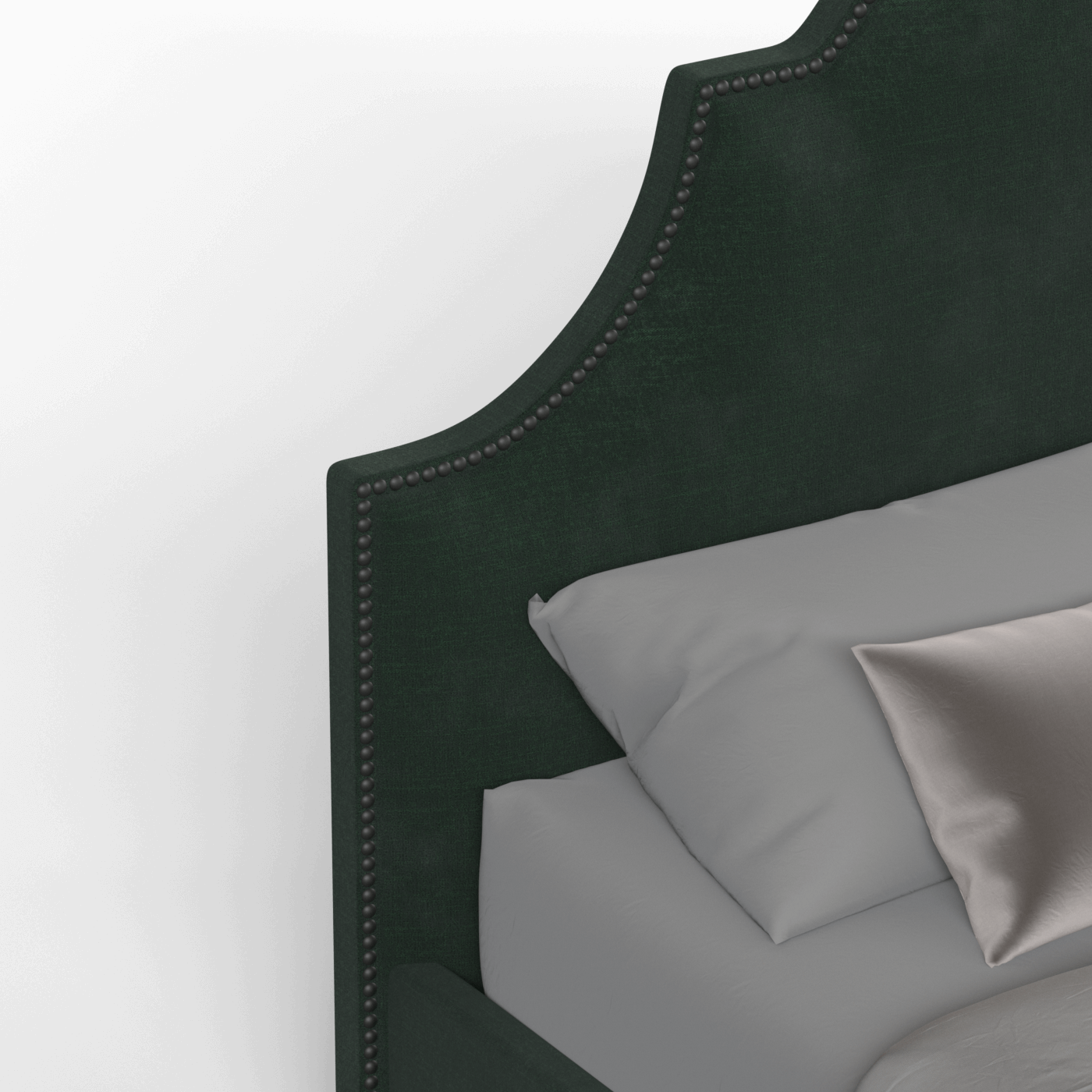 Das Ariana-Bett strahlt mit seinem gewölbten Kopfteil zeitlose Eleganz aus, das mit einer raffinierten Nagelkopfverzierung für einen Hauch von Luxus versehen ist. Der weiche, gepolsterte Rahmen sorgt für Gemütlichkeit und Eleganz, während seine solide Konstruktion dauerhaften Halt gewährleistet. Das Ariana-Bett ist perfekt für die Schaffung einer klassischen und doch modernen Schlafzimmerästhetik und kombiniert traditionellen Charme mit zeitgenössischer Handwerkskunst.