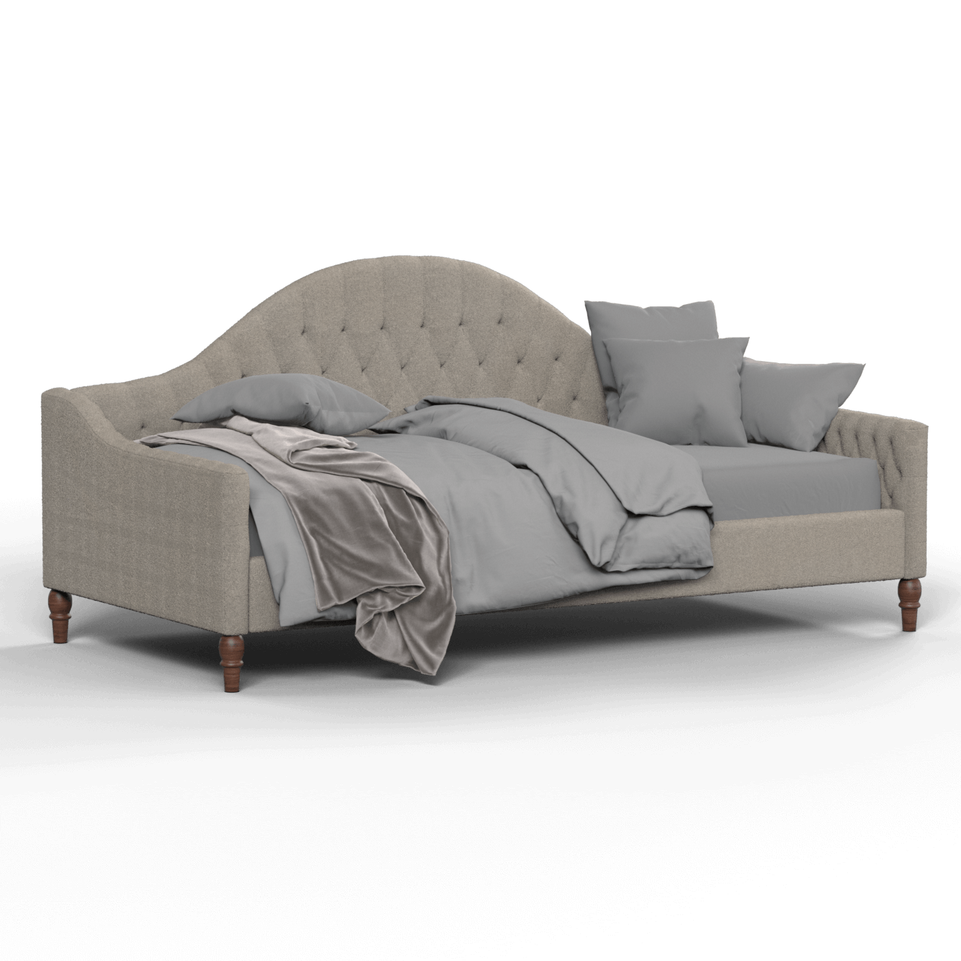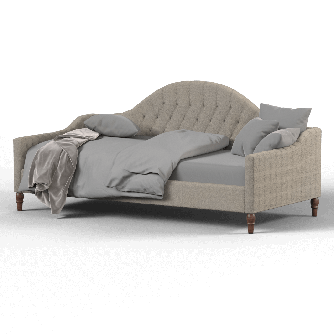 Das Elise Daybed verfügt über eine charmante, getuftete Rückenlehne mit anmutig geschwungenem Design, die jedem Raum einen Hauch von Eleganz verleiht. Seine weiche Polsterung und die sanft geneigten Armlehnen sorgen für ein edles Aussehen. Dieses auf Holzbeinen stehende Tagesbett hat einen klassischen Reiz und bietet gleichzeitig eine praktische Sitz- oder Schlafmöglichkeit. Das Elise Daybed ist ideal für kleine Räume, Gästezimmer oder als Kinderbett und verbindet traditionelles Design mit vielseitiger Funktionalität.