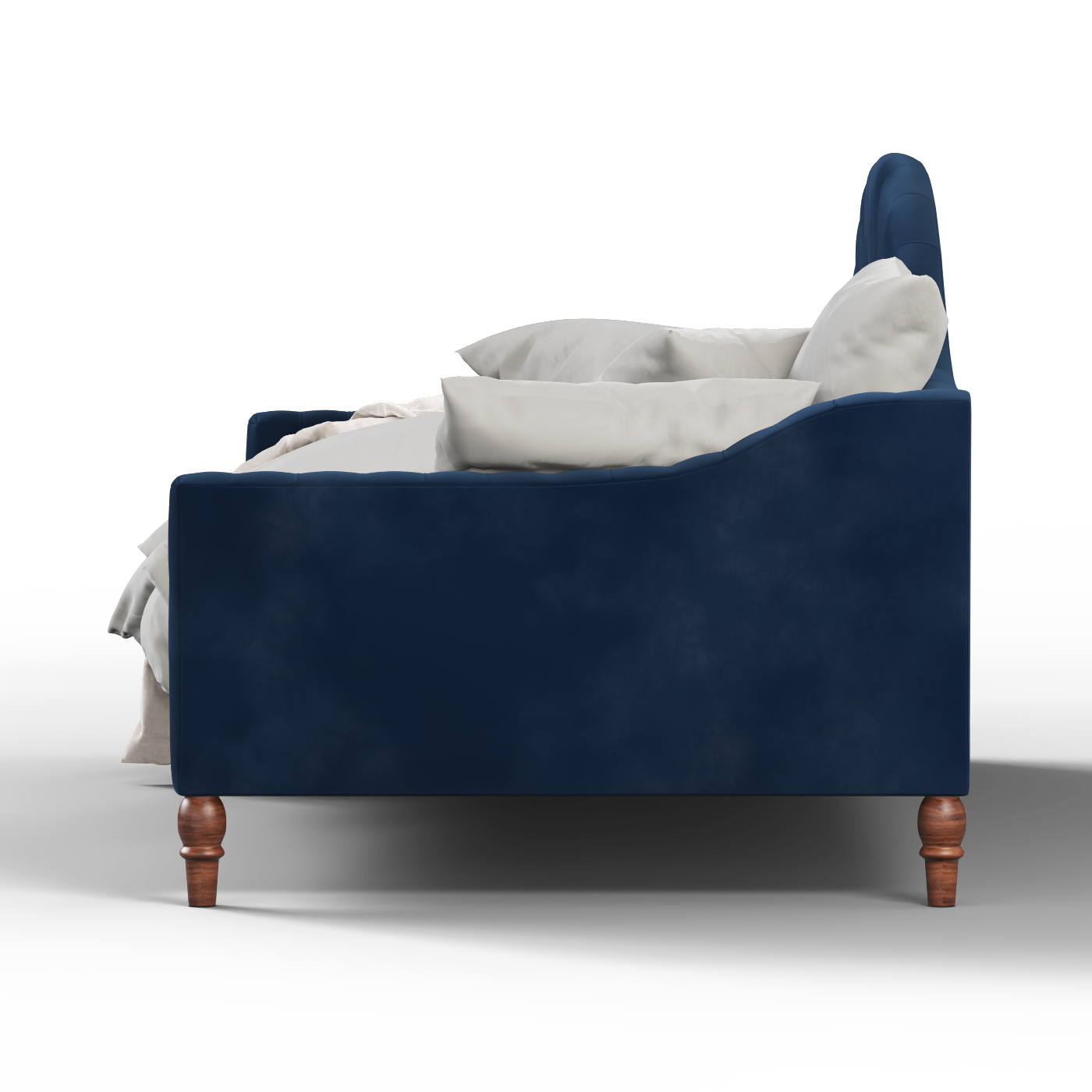 Das Elise Daybed verfügt über eine charmante, getuftete Rückenlehne mit anmutig geschwungenem Design, die jedem Raum einen Hauch von Eleganz verleiht. Seine weiche Polsterung und die sanft geneigten Armlehnen sorgen für ein edles Aussehen. Dieses auf Holzbeinen stehende Tagesbett hat einen klassischen Reiz und bietet gleichzeitig eine praktische Sitz- oder Schlafmöglichkeit. Das Elise Daybed ist ideal für kleine Räume, Gästezimmer oder als Kinderbett und verbindet traditionelles Design mit vielseitiger Funktionalität.