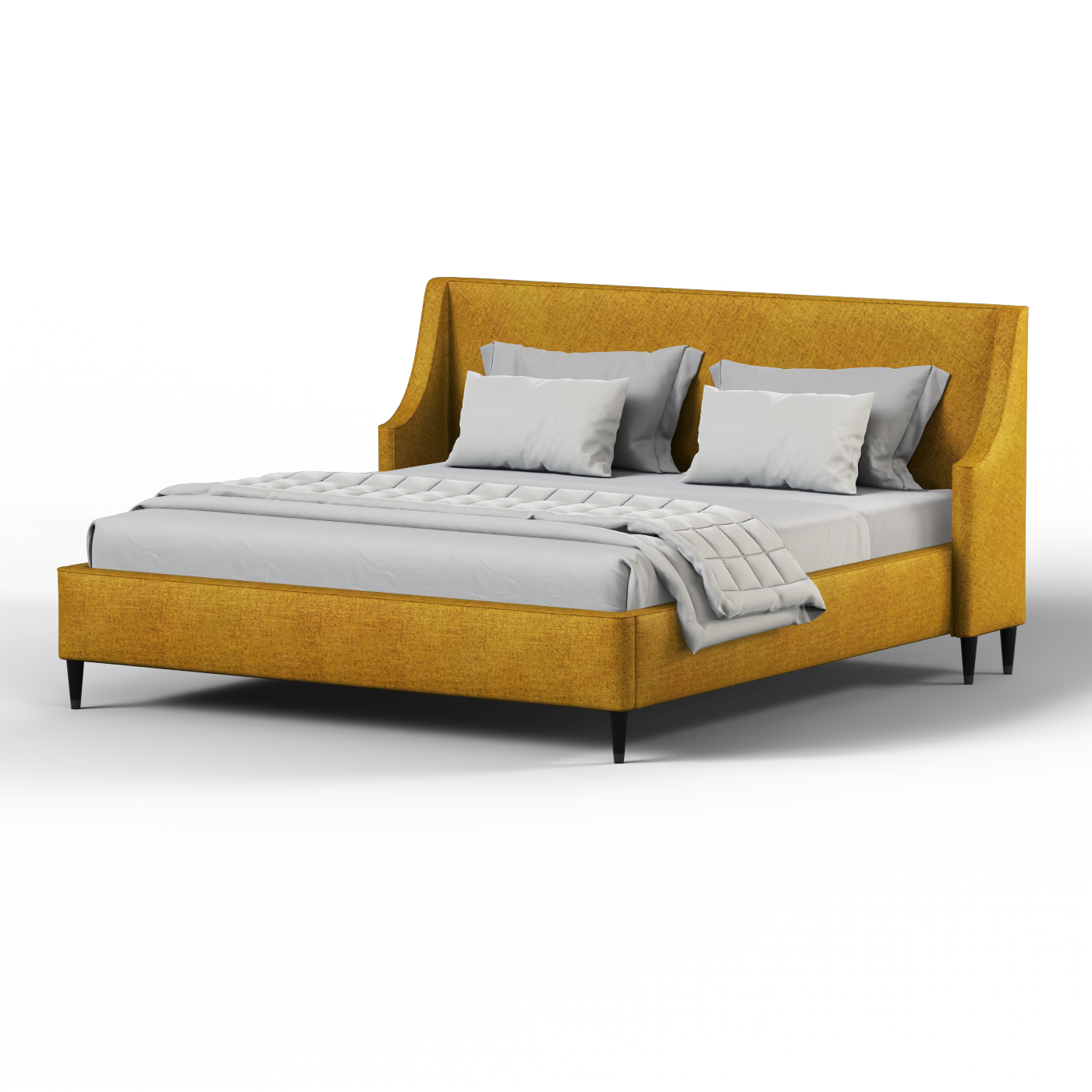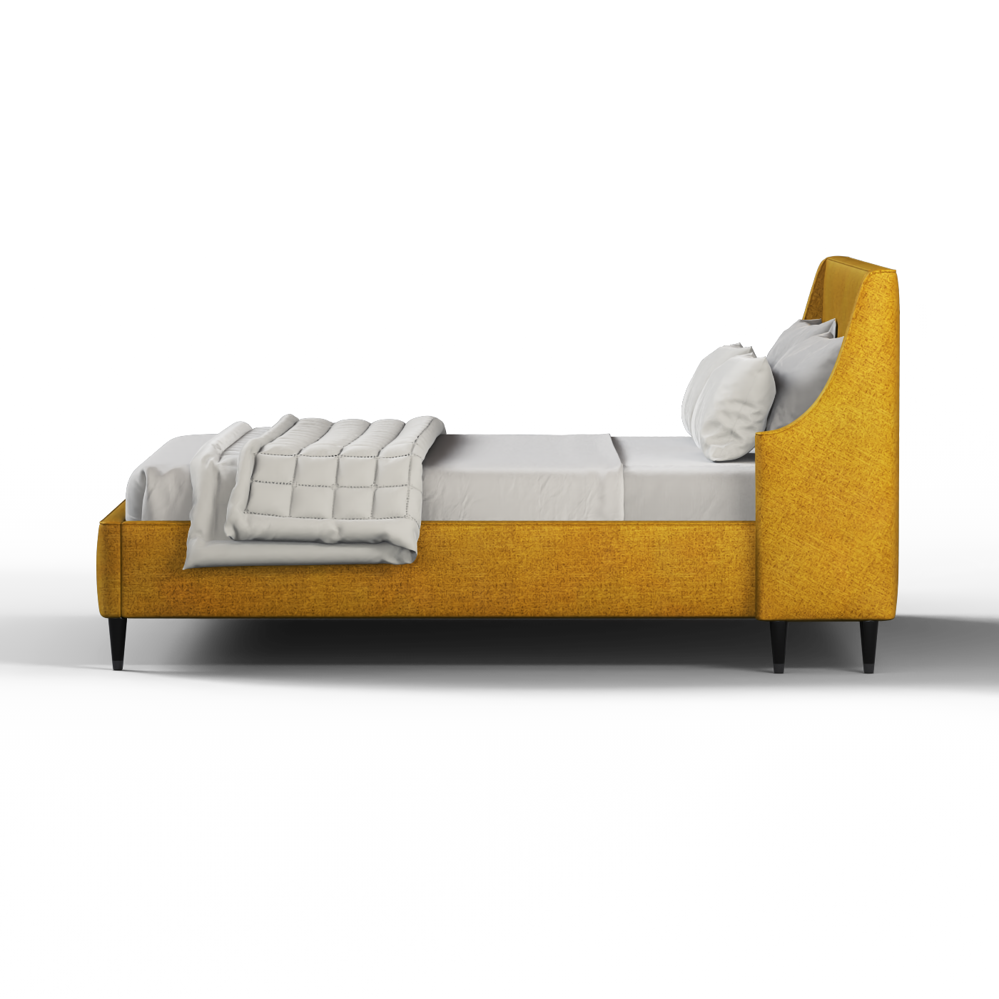 Das Bett Laura bietet mit seinem anmutig geschwungenen Kopfteil und den glatten Seitenteilen eine Balance aus Stil und Komfort. Mit seiner weichen Polsterung verleiht es jedem Schlafzimmer eine gemütliche, edle Note. Die konischen Beine des Bettes mit metallischen Akzenten unterstreichen sein modernes Design und sorgen für einen eleganten und dennoch dezenten Look. Laura ist die perfekte Mischung aus Luxus und Funktionalität für ein anspruchsvolles Schlafzimmer. Auf Bestellung handgefertigt und in 6-8 Wochen für 49 £ geliefert