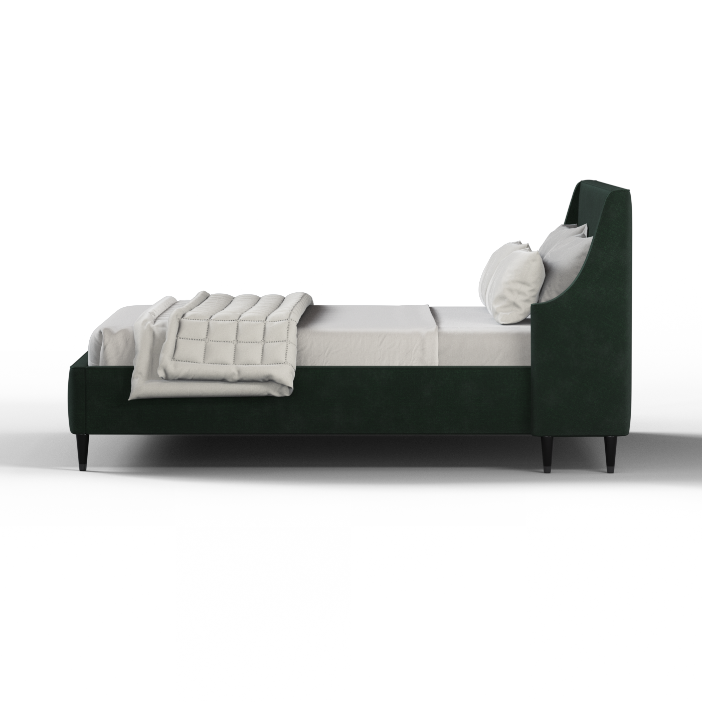 Das Bett Laura bietet mit seinem anmutig geschwungenen Kopfteil und den glatten Seitenteilen eine Balance aus Stil und Komfort. Mit seiner weichen Polsterung verleiht es jedem Schlafzimmer eine gemütliche, edle Note. Die konischen Beine des Bettes mit metallischen Akzenten unterstreichen sein modernes Design und sorgen für einen eleganten und dennoch dezenten Look. Laura ist die perfekte Mischung aus Luxus und Funktionalität für ein anspruchsvolles Schlafzimmer. Auf Bestellung handgefertigt und in 6-8 Wochen für 49 £ geliefert