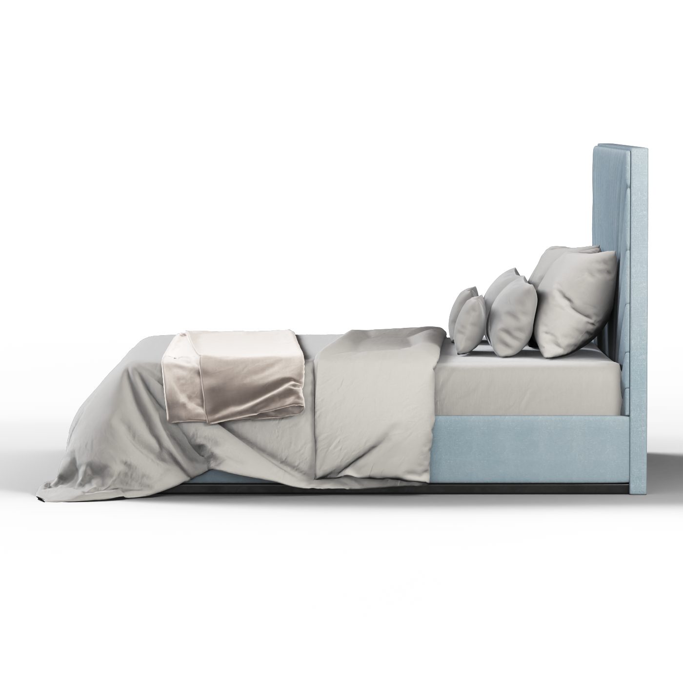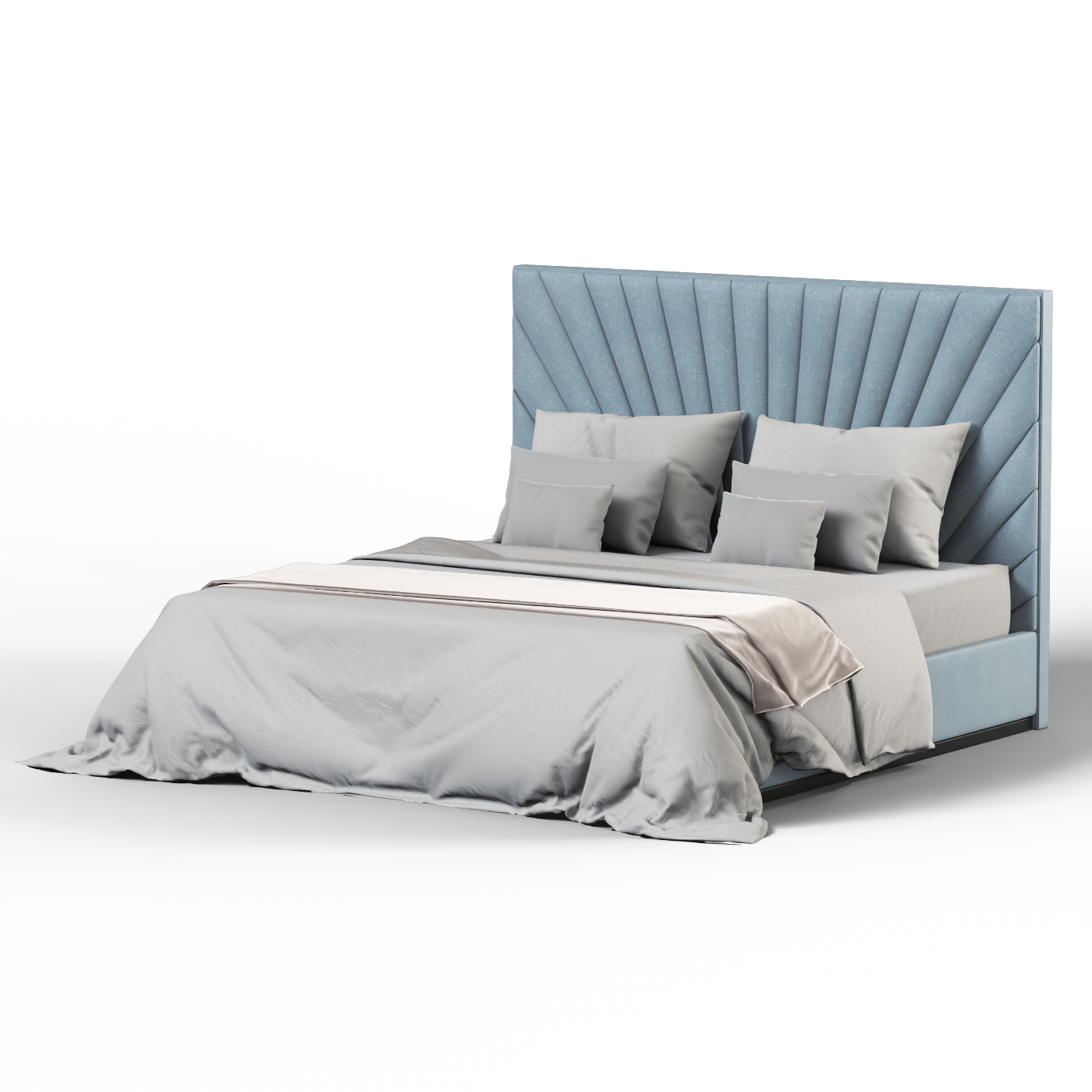 Das Lucia-Bett mit hohem Kopfteil besticht durch sein dramatisches, vertikal getäfeltes Kopfteil, das jedem Schlafzimmer einen markanten Blickfang verleiht. Das hohe, gepolsterte Design strahlt Eleganz aus, während seine klaren Linien eine moderne Note verleihen. Das Lucia-Bett wurde mit Blick auf Stil und Komfort gebaut und bietet eine stützende Grundlage für erholsamen Schlaf. Perfekt für alle, die ihr Schlafzimmer mit einem zeitgenössischen Statement-Stück aufwerten möchten.