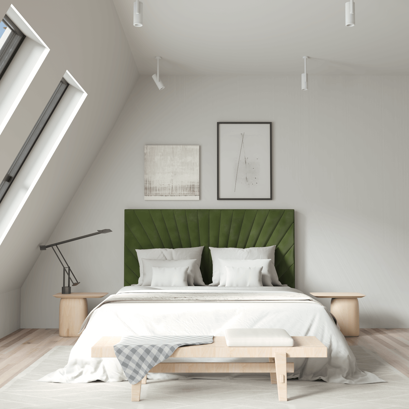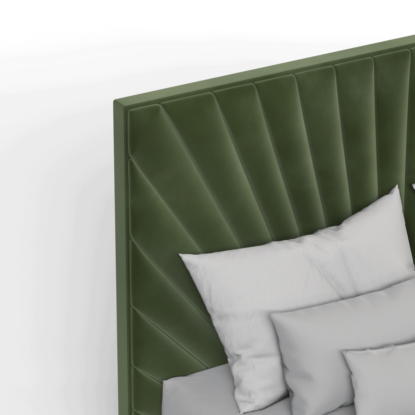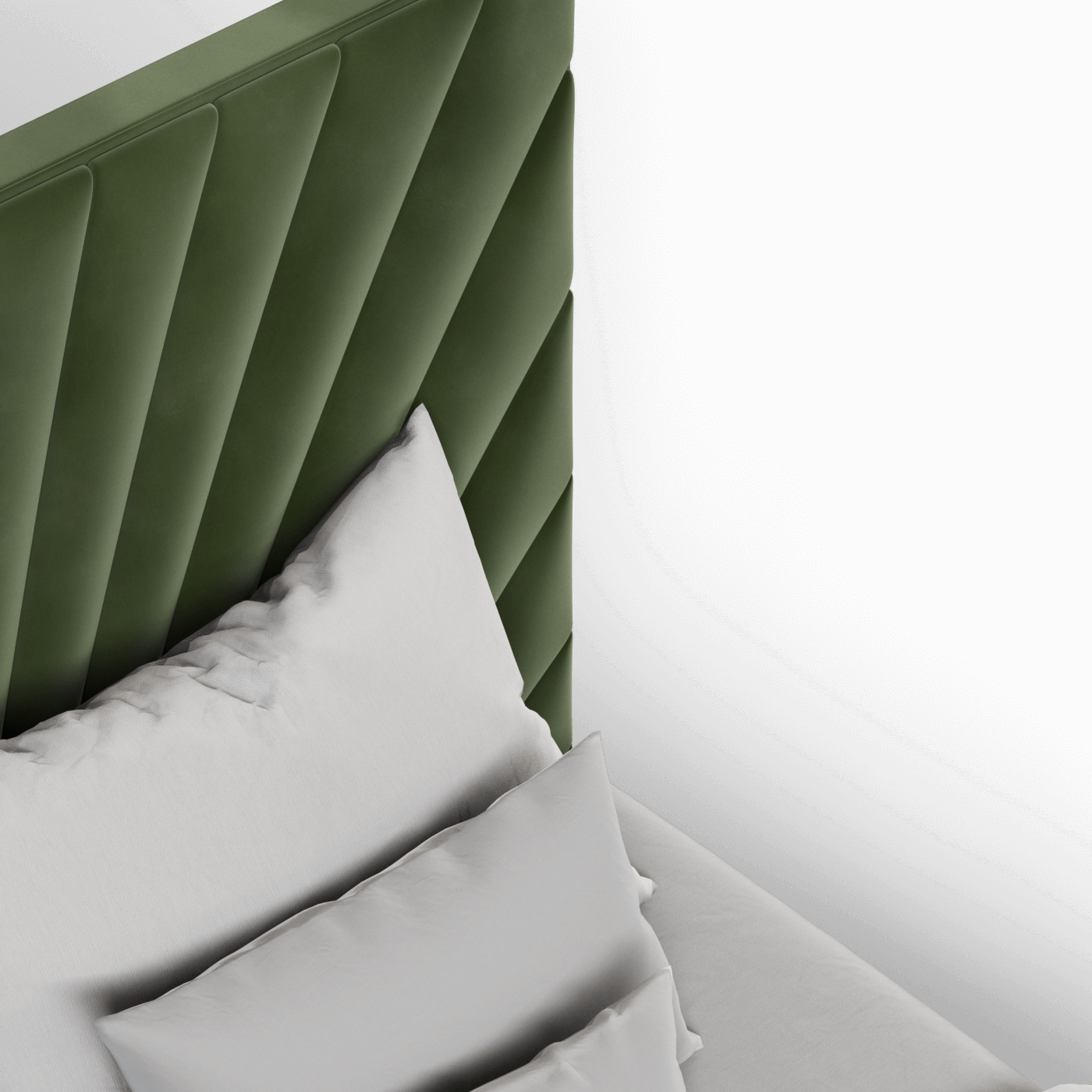 Das Lucia-Bett mit hohem Kopfteil besticht durch sein dramatisches, vertikal getäfeltes Kopfteil, das jedem Schlafzimmer einen markanten Blickfang verleiht. Das hohe, gepolsterte Design strahlt Eleganz aus, während seine klaren Linien eine moderne Note verleihen. Das Lucia-Bett wurde mit Blick auf Stil und Komfort gebaut und bietet eine stützende Grundlage für erholsamen Schlaf. Perfekt für alle, die ihr Schlafzimmer mit einem zeitgenössischen Statement-Stück aufwerten möchten.