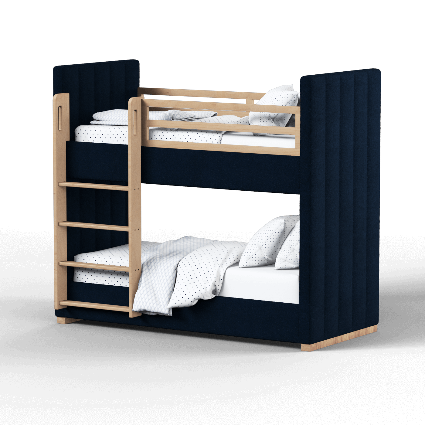 Das Paolo Etagenbett ist ein stilvolles und praktisches Kinderbett mit einem eleganten vertikalen Kopf- und Fußteil mit weichen, gepolsterten Oberflächen. Der stabile Holzrahmen verfügt über eine eingebaute Leiter für den einfachen Zugang zum oberen Bett, was es perfekt für Kinder macht. Beide Etagen bieten bequeme Schlafplätze, die von einer robusten Struktur getragen werden, und stellen eine moderne und funktionale Lösung für Kinderzimmer oder gemeinsam genutzte Schlafzimmer dar.