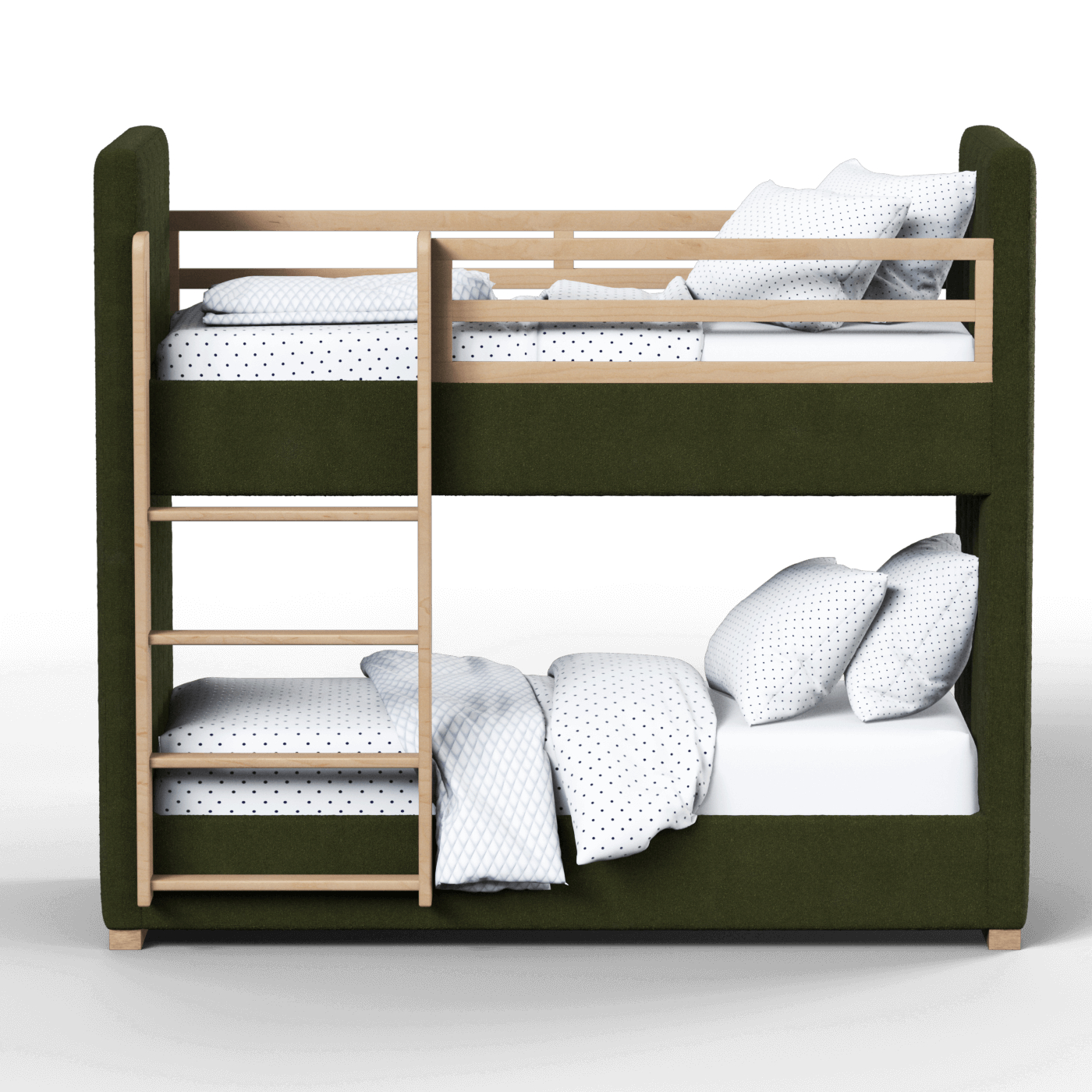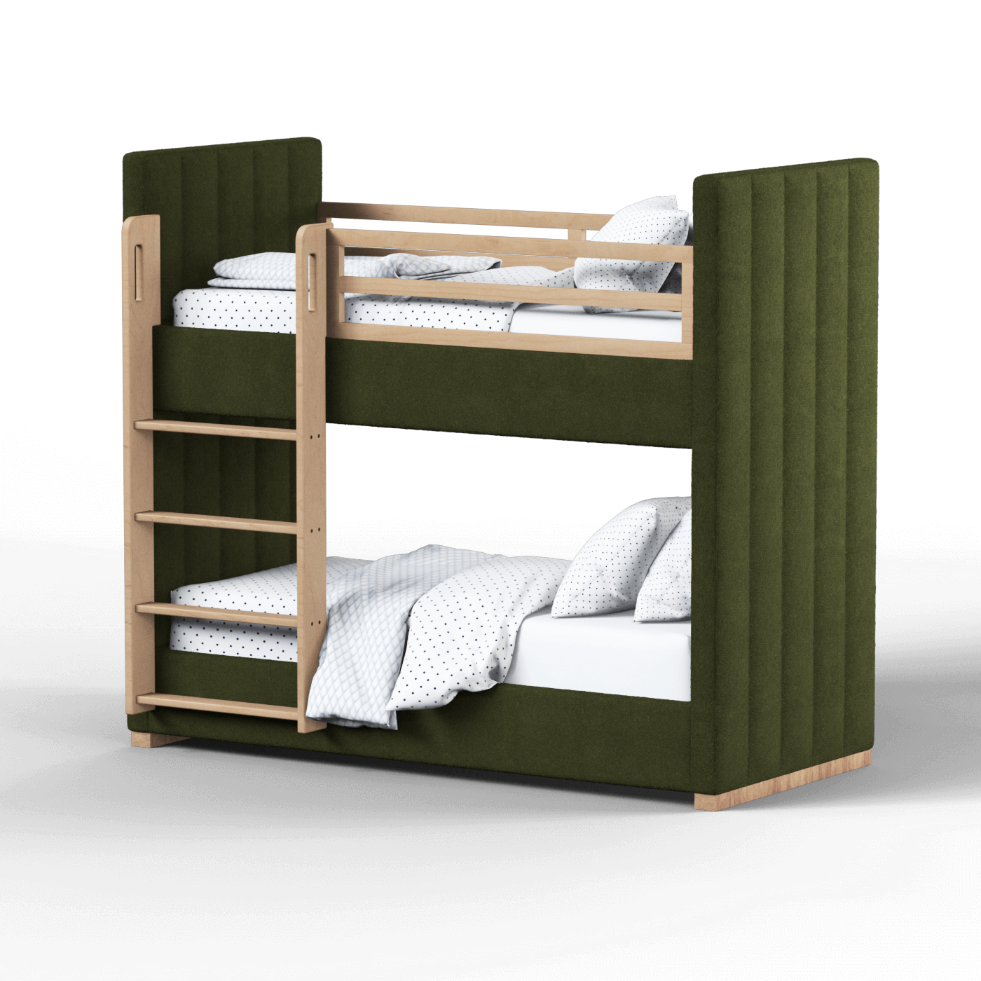 Das Paolo Etagenbett ist ein stilvolles und praktisches Kinderbett mit einem eleganten vertikalen Kopf- und Fußteil mit weichen, gepolsterten Oberflächen. Der stabile Holzrahmen verfügt über eine eingebaute Leiter für den einfachen Zugang zum oberen Bett, was es perfekt für Kinder macht. Beide Etagen bieten bequeme Schlafplätze, die von einer robusten Struktur getragen werden, und stellen eine moderne und funktionale Lösung für Kinderzimmer oder gemeinsam genutzte Schlafzimmer dar.