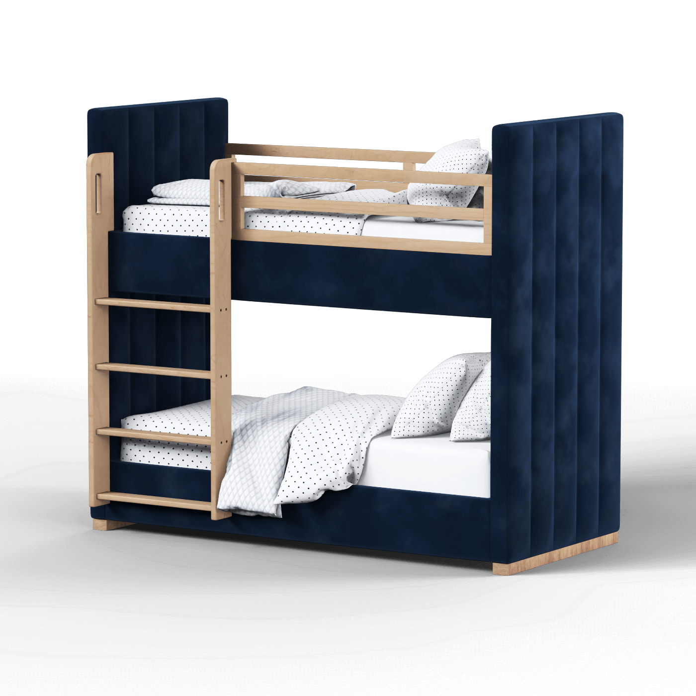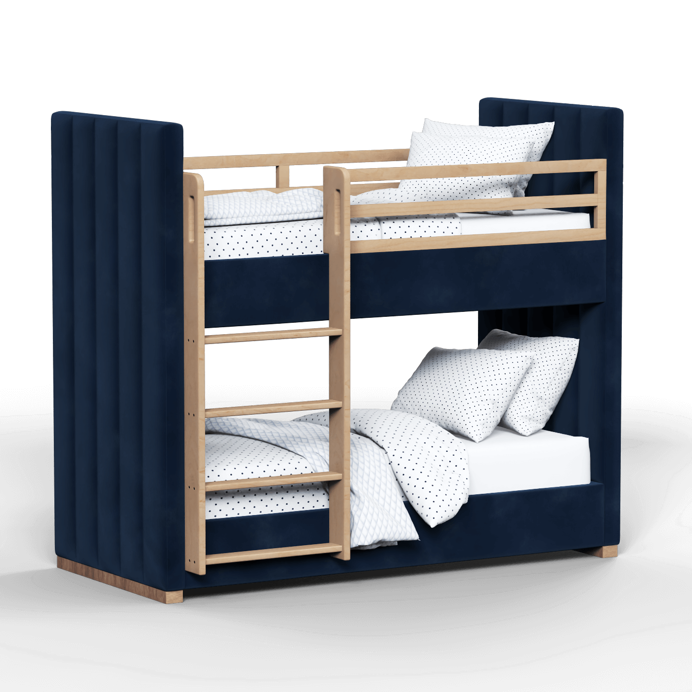 Das Paolo Etagenbett ist ein stilvolles und praktisches Kinderbett mit einem eleganten vertikalen Kopf- und Fußteil mit weichen, gepolsterten Oberflächen. Der stabile Holzrahmen verfügt über eine eingebaute Leiter für den einfachen Zugang zum oberen Bett, was es perfekt für Kinder macht. Beide Etagen bieten bequeme Schlafplätze, die von einer robusten Struktur getragen werden, und stellen eine moderne und funktionale Lösung für Kinderzimmer oder gemeinsam genutzte Schlafzimmer dar.