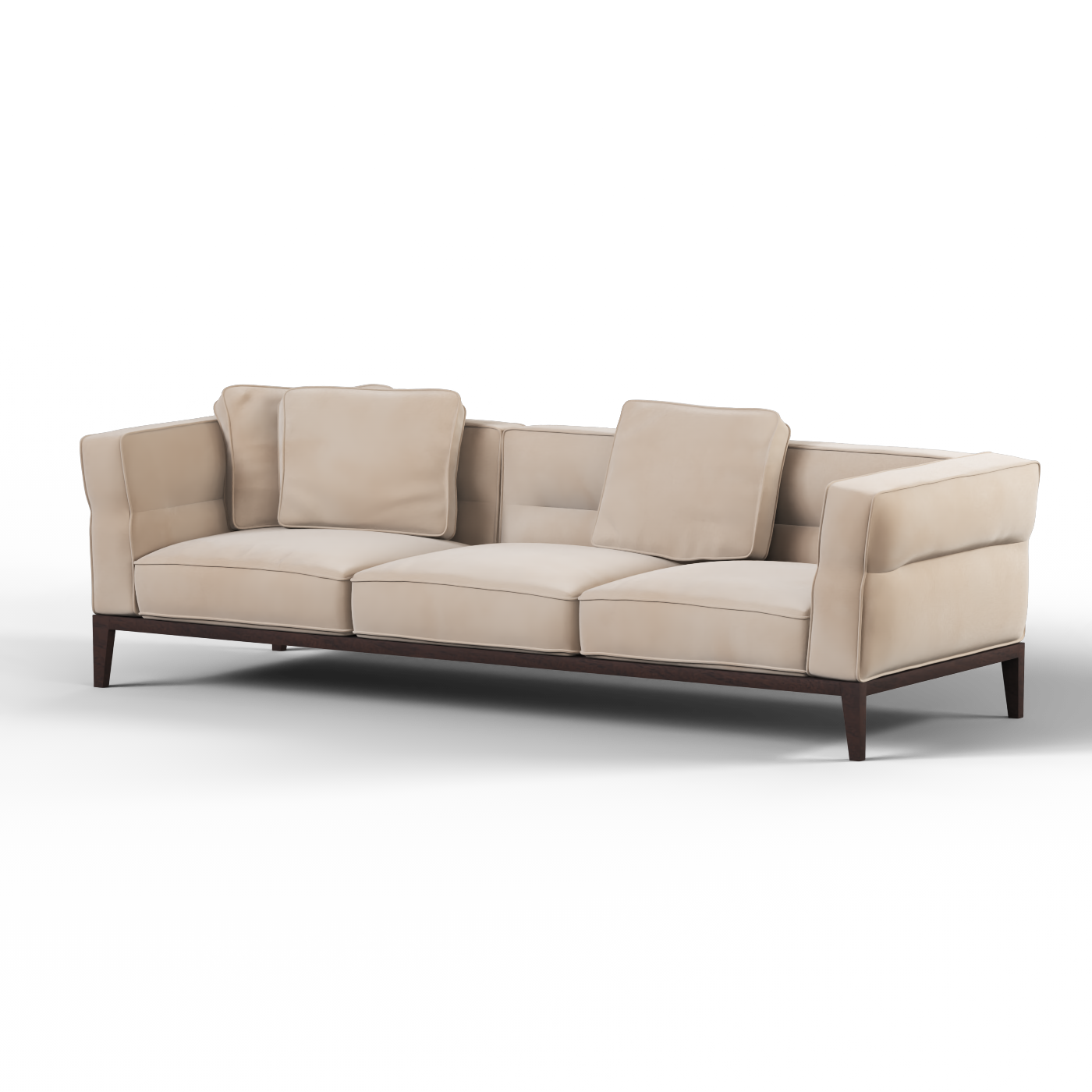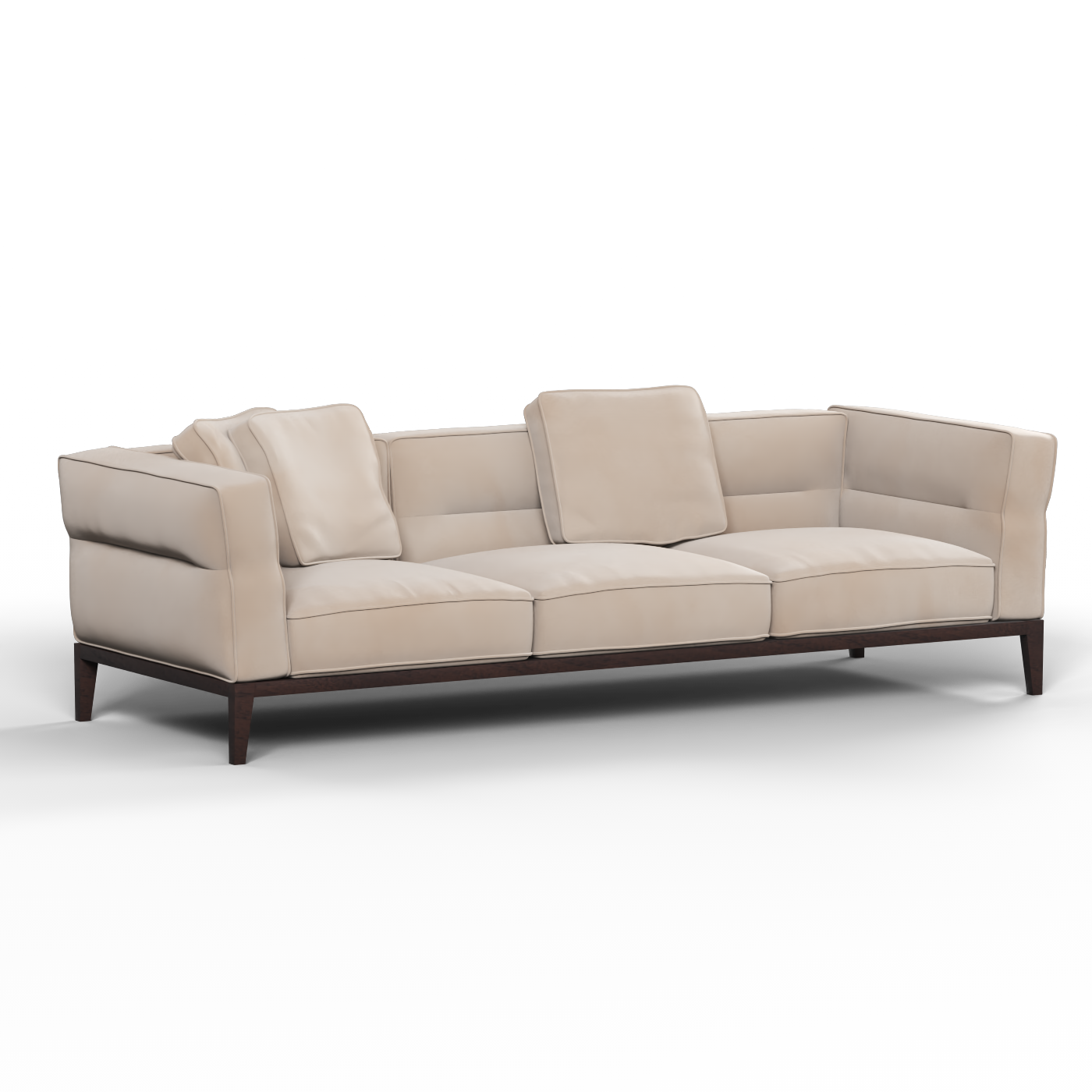 Das Regent Sofa besticht durch seine klaren Linien und seine strukturierte Form und schafft eine Mischung aus klassischer Eleganz und modernem Minimalismus. Seine getuftete Rückenlehne und die breite Sitzfläche sorgen für ein edles Aussehen und ein entspanntes Gefühl. Gestützt auf schlanken, erhöhten Holzbeinen verleiht es einen Hauch von Raffinesse und behält gleichzeitig eine leichte, luftige Präsenz.