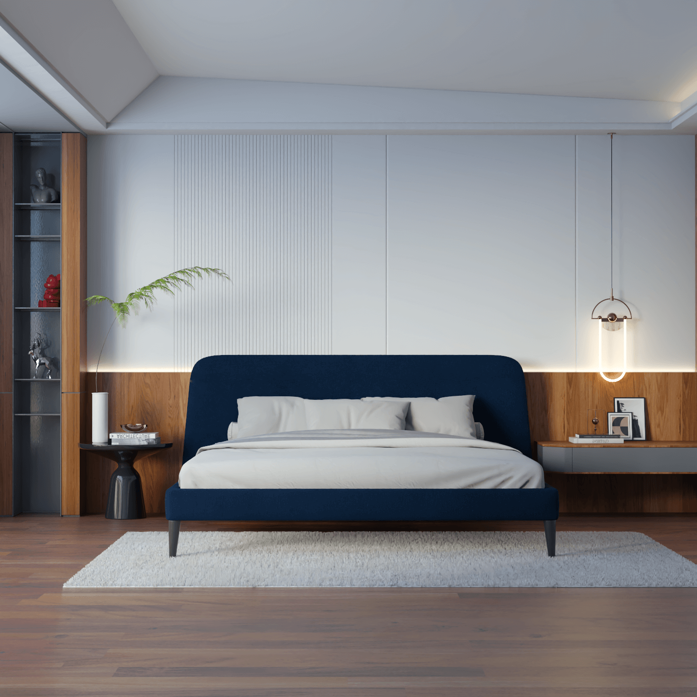 Das Selma-Bett kombiniert ein elegantes, modernes Design mit einem weichen, geschwungenen Kopfteil, das für eine gemütliche Note sorgt. Sein minimalistischer Rahmen steht auf konischen Beinen und verleiht ihm ein leichtes und luftiges Gefühl. Das Selma-Bett ist perfekt für jedes Schlafzimmer und bringt mit seinen klaren Linien und seiner robusten Konstruktion sowohl Entspannung als auch Eleganz. Eine großartige Wahl für alle, die ein einfaches, aber elegantes Bett suchen.
