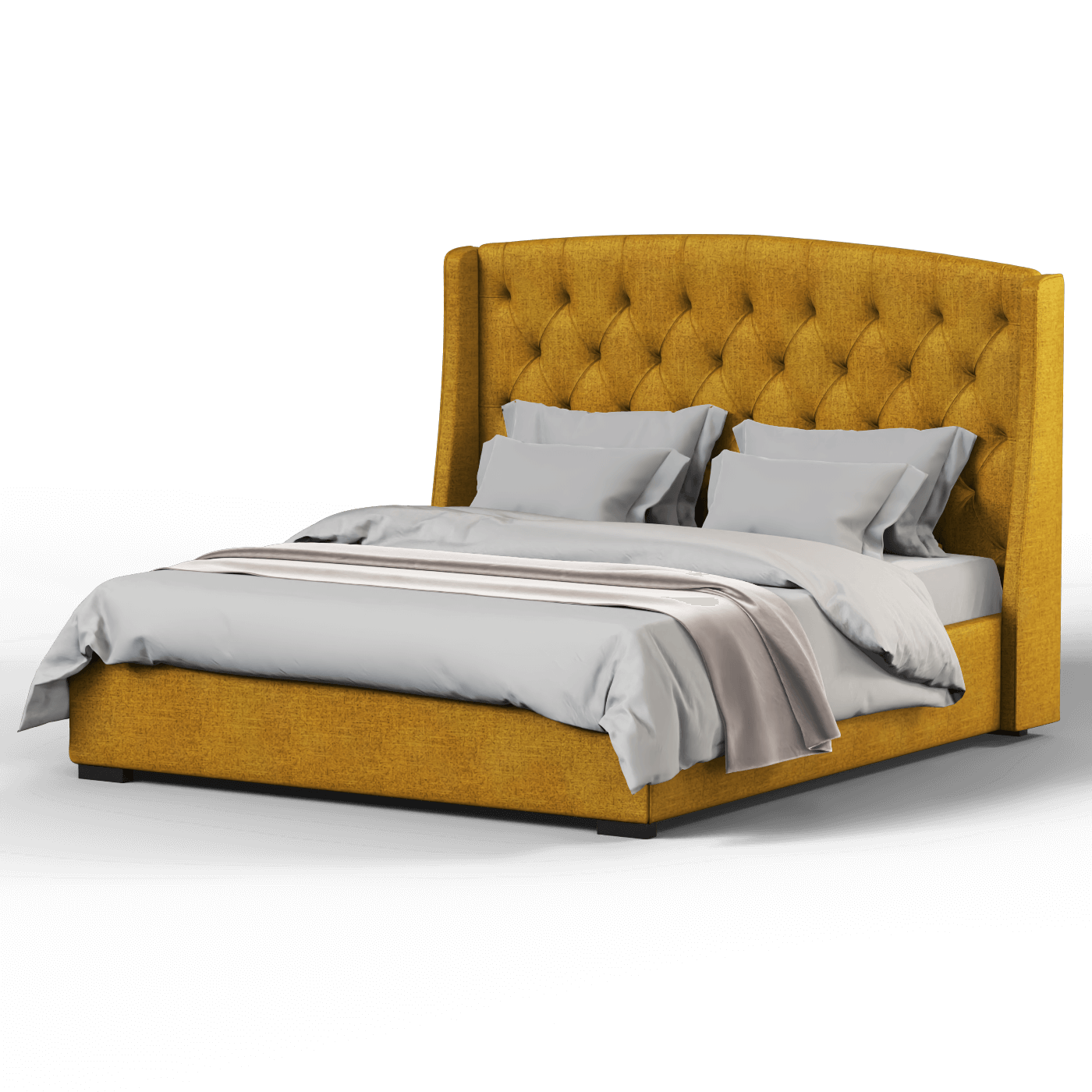 Das Sophia Buttons Headboard Bed verfügt über ein hohes, getuftetes Kopfteil mit klassischen Knopfdetails und abgerundeten Kanten. Sein weicher, gepolsterter Rahmen bietet sowohl Komfort als auch ein zeitloses Aussehen. Das Bett steht auf einem stabilen Unterbau, der Haltbarkeit gewährleistet und gleichzeitig eine anspruchsvolle Ästhetik bewahrt. Das Design verbindet klassische Eleganz mit modernem Komfort und macht es zu einem Blickfang in jedem Schlafzimmer.