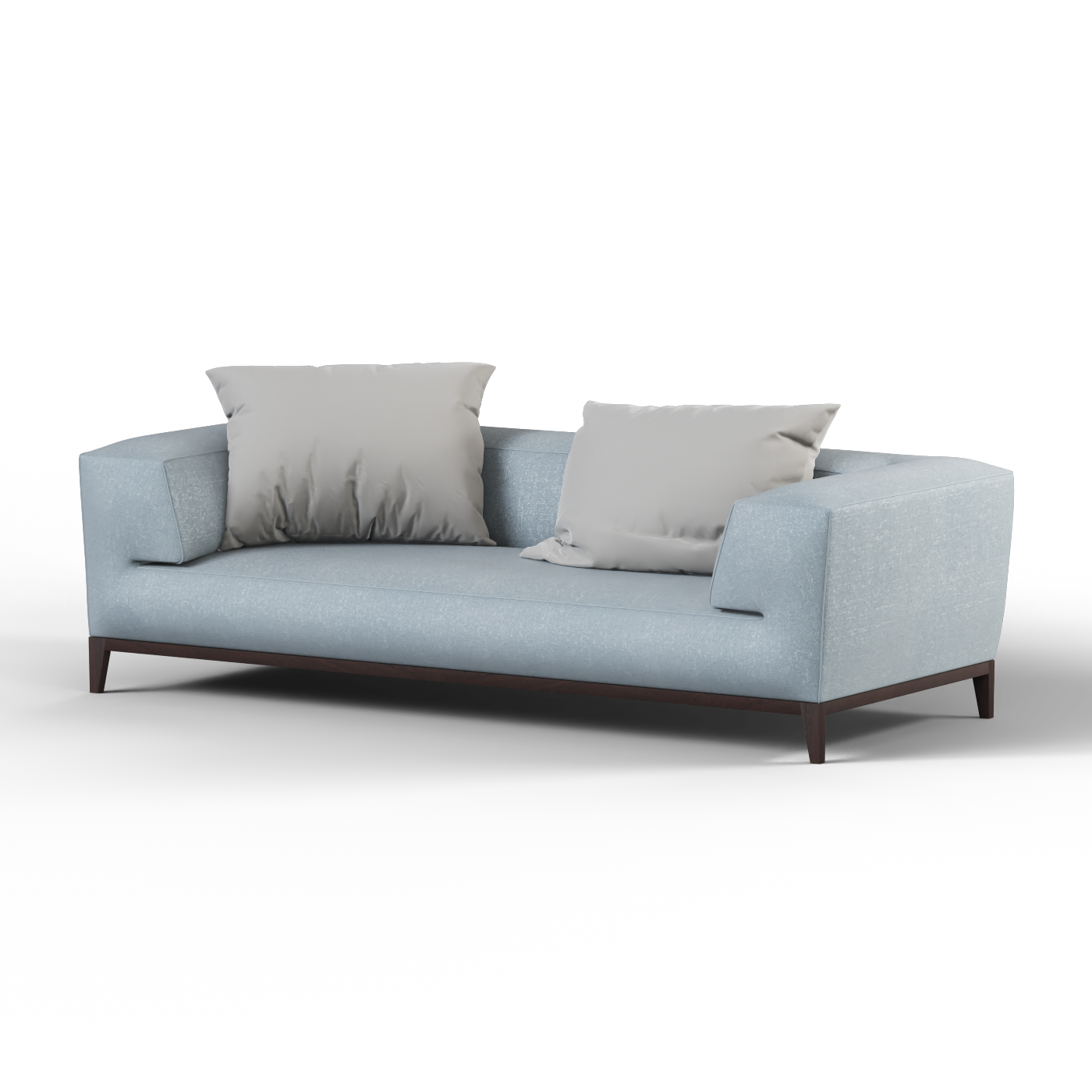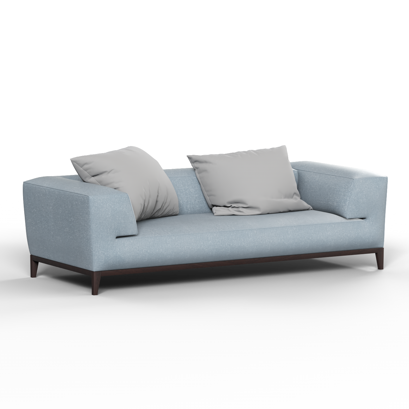 Das Strand Sofa zeichnet sich durch ein schlankes, minimalistisches Design mit klaren Linien und einem flachen Rahmen aus. Seine breiten Armlehnen und die tiefe Sitzfläche schaffen eine bequeme Liegefläche, während die robuste Konstruktion für lange Haltbarkeit sorgt. Das Sofa steht auf eleganten, konischen Beinen, die ihm einen modernen Touch verleihen und es zu einem vielseitigen Möbelstück machen, das gut in jedes moderne Wohnzimmer passt.